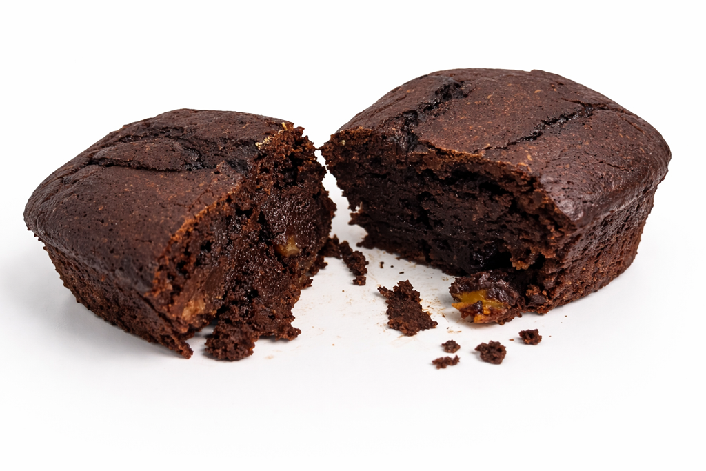 Azúcar moreno, aceite de girasol, agua, huevos, chocolate (pasta de cacao, azúcar, manteca de cacao, emulsionante: lecitina de soja E-322, aroma natural de vainilla), azúcar blanco, harina de maíz, cacao en polvo, nueces y sal.